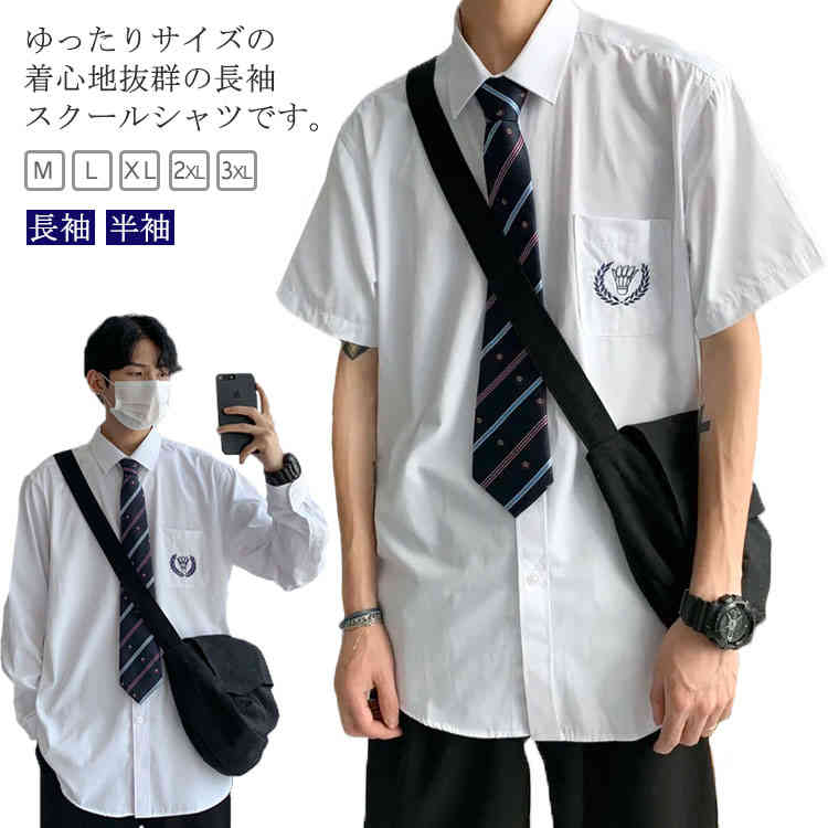 長袖 スクールシャツ 男子 学生服 制服 ワイシャツ yシャツ 刺繍付き レギュラー 大きいサイズ 中学生 高校生 ゆったり 男女兼用 シンプル 韓国 卒業式 フォーマル 発表会 コスチューム コスプ