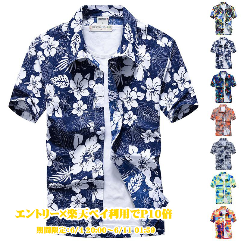 1-2サイズ上をお勧め アロハシャツ メンズ 半袖シャツメンズファッション トップス カジュアルシャツ