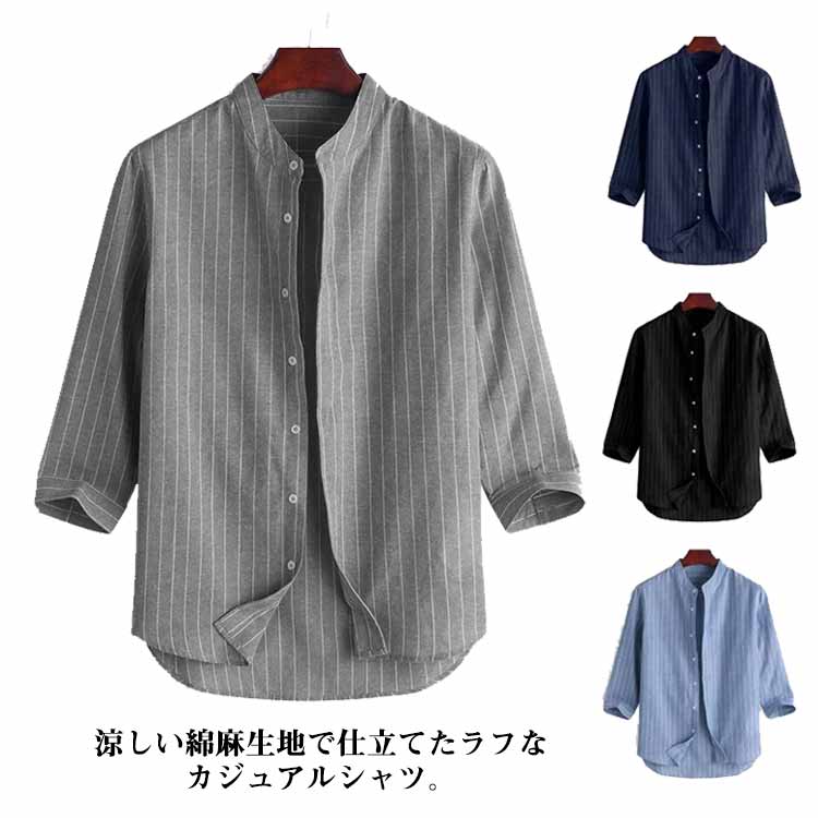 春 夏 開襟シャツ メンズ リネンブレンド 7分袖シャツメンズファッション トップス カジュアルシャツ