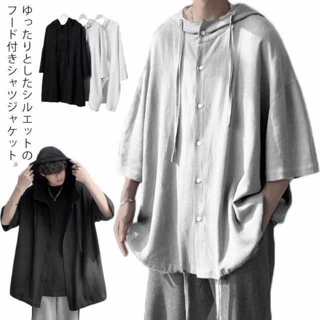 シャツ 七分袖 メンズ フード付き シャツ オーバーサイズ シャツメンズファッション トップス カジュアルシャツ