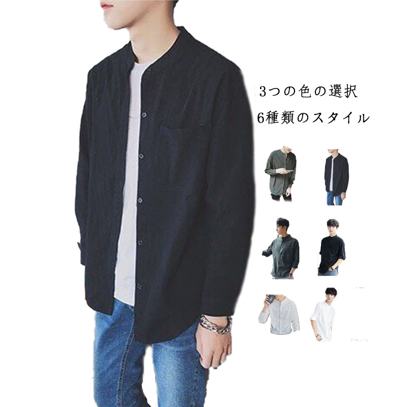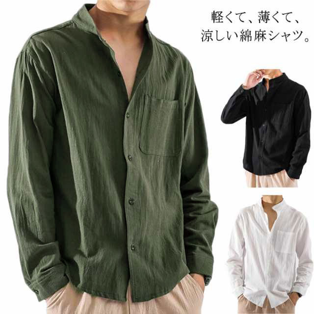 立襟 メンズ カジュアルシャツ シャツ リネンシャツ カジュアルシャツ 秋服 無地 綿麻 大きいサイズ おしゃれ かっこいい トップス シンプル