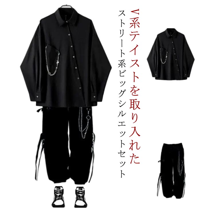 ~2 男女兼用 ダンス衣装 上下セット ビッグシルエット カッコイイメンズファッション トップス カジュアルシャツ