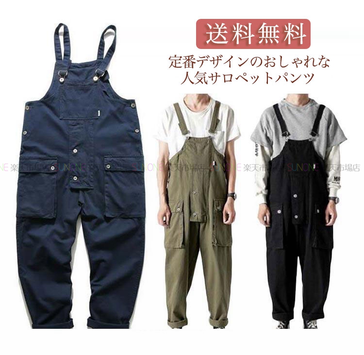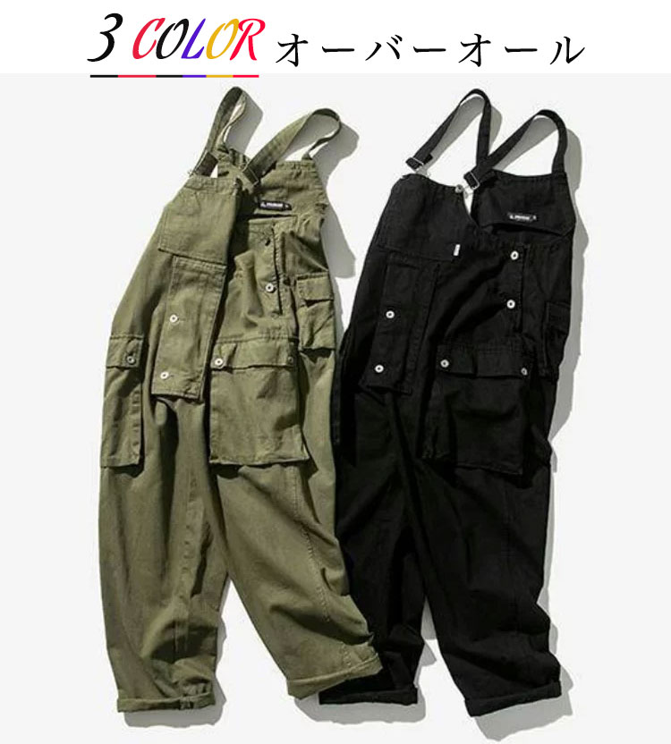L アーミーグリーン サロペット ユニセックス ブラック メンズ レディース オーバーオール カーゴパンツ ロングパンツ 無地 M オーバーオール XL 2XL 3XL コスプレ サルエルパンツ メン