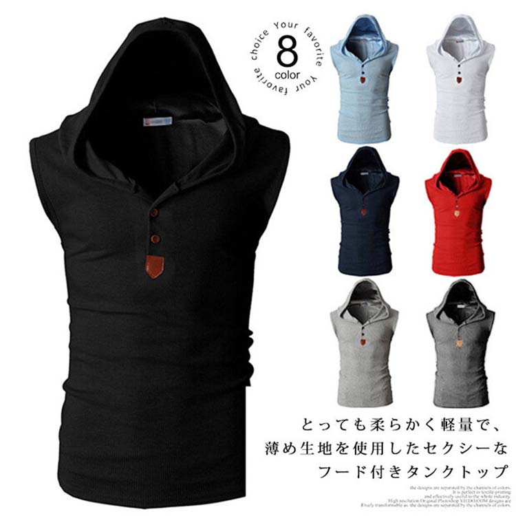 フード付き タンクトップ メンズ ノースリーブ パーカー 袖なし ノースリーブパーカ ランニングシャツ スポーツウエア トレーニングウェア ジムウェア ストリート系 部屋着 ルームウエア