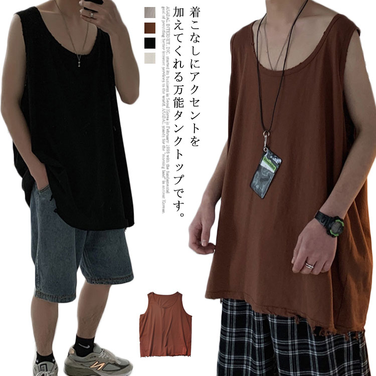4色展開 無地 無地 韓国 インナー ノースリーブ トップス 着回し タンクトップ レイヤード 重ね着 大きいサイズ ゆったり メンズ 春夏 ロング丈