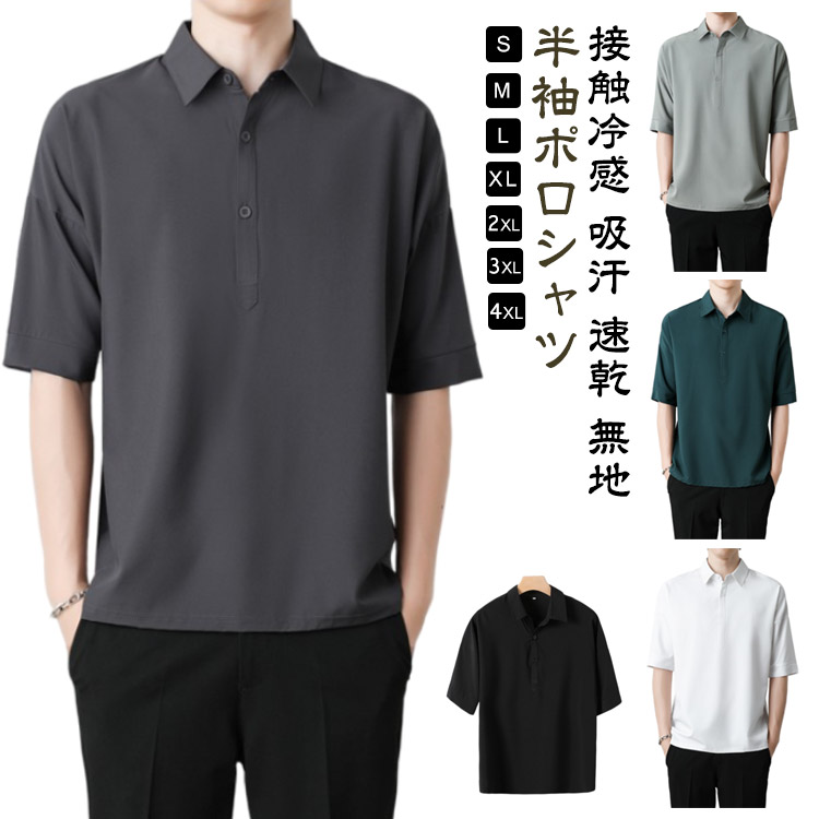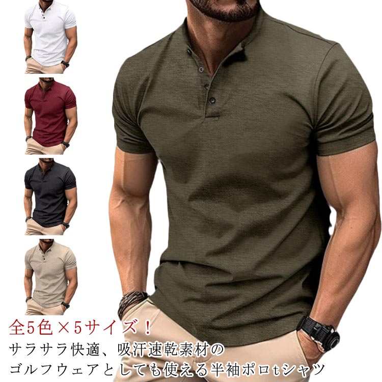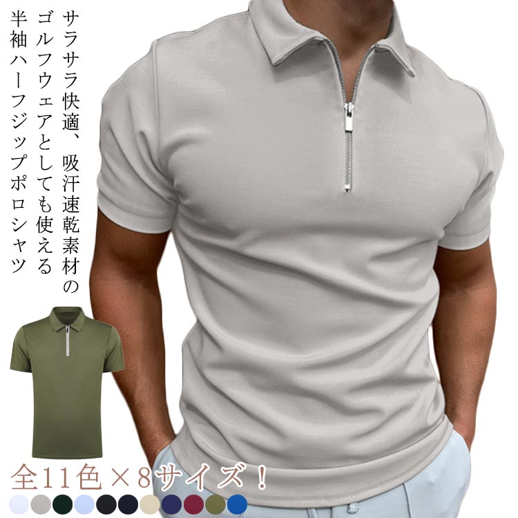 ~5 無地 ゴルフシャツ ポロシャツ 半袖 薄手 吸汗速乾 ハーフジップメンズファッション トップス ポロシャツ
