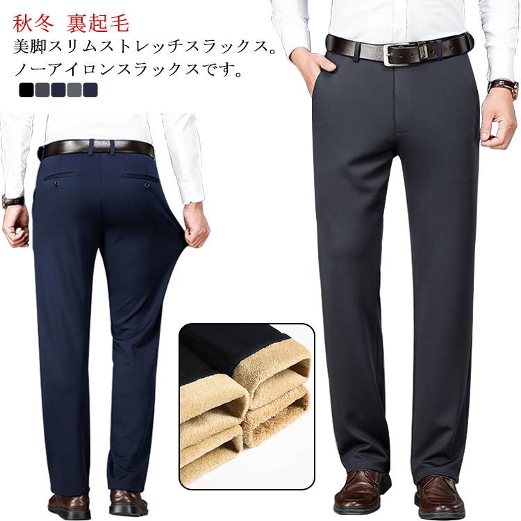 メンズ ノーアイロン 裏起毛 スリム 秋冬 春 スラックス ビジネス ビジネスパンツ ストレッチメンズファッション ズボン パンツ