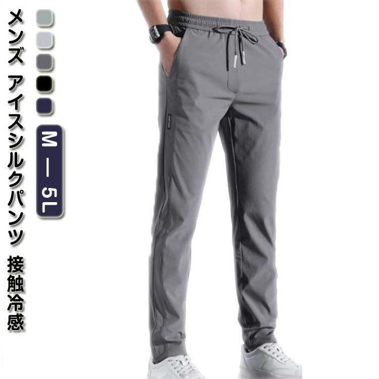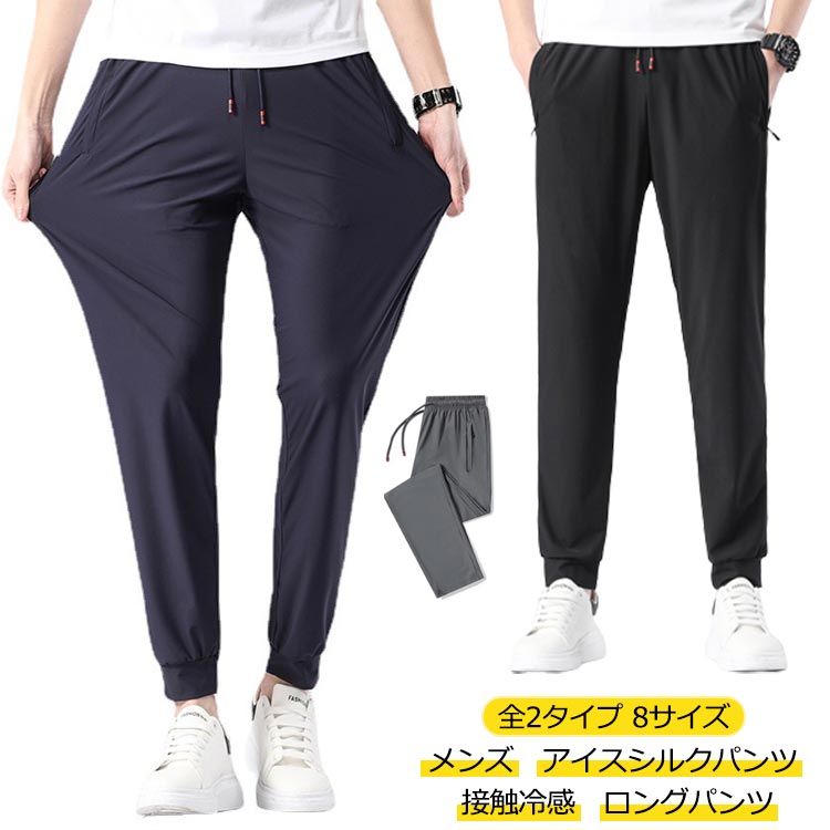 メンズ アイスシルクパンツ 冷感パンツ 無地 接触冷感 軽量 スポーツパンツ 速乾 ロングパンツメンズファッション ズボン パンツ