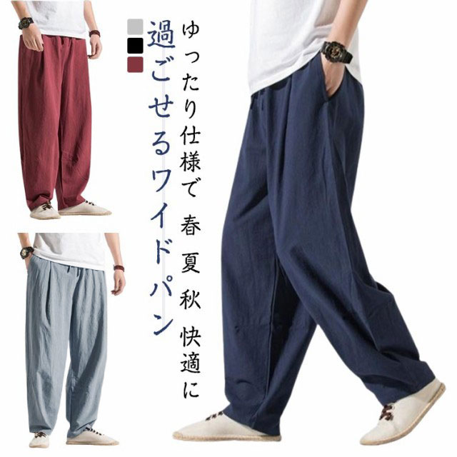 ワイド パンツ ボトムス メンズ イージーパンツ 綿麻 ワークパンツ メンズファッションメンズファッション ズボン パンツ