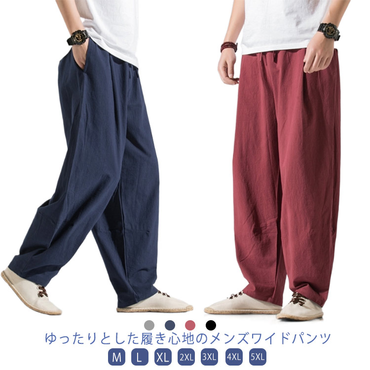 綿100% ワイドパンツ メンズ パンツ メンズ 長ズボン 春 夏 秋 冬 夏物 カジュアルパンツ シンプ 無地 ロングパンツ サルエル ゆったり