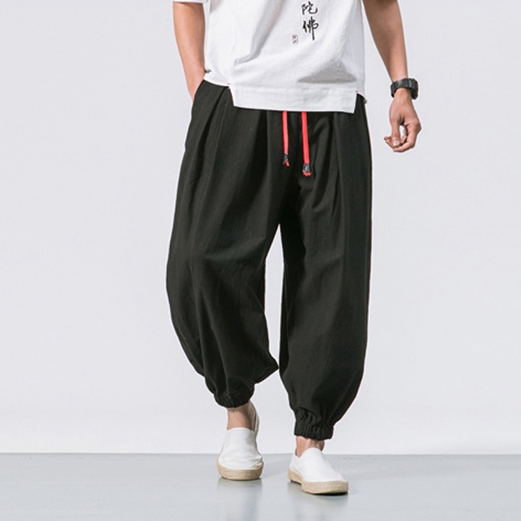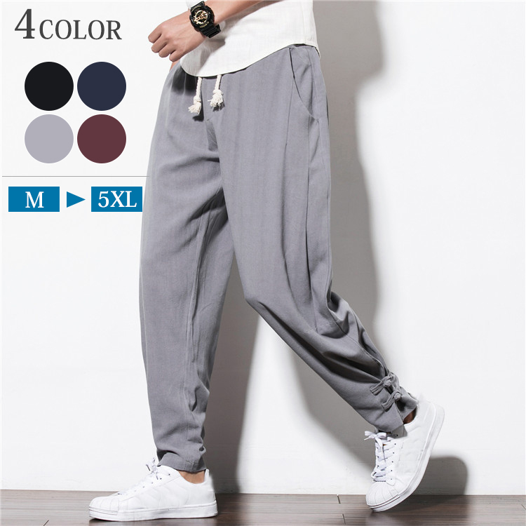 サルエルパンツ メンズ ハロンパンツ 裾ゴム ウエストゴム ゆったり ワイドパンツ 無地 大きいサイズ 部屋着 メンズ リネンパンツ 麻パンツ カジュアル 綿麻 ボトムス メンズファッション