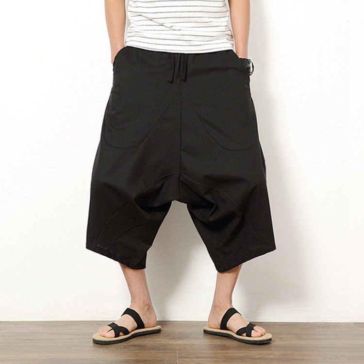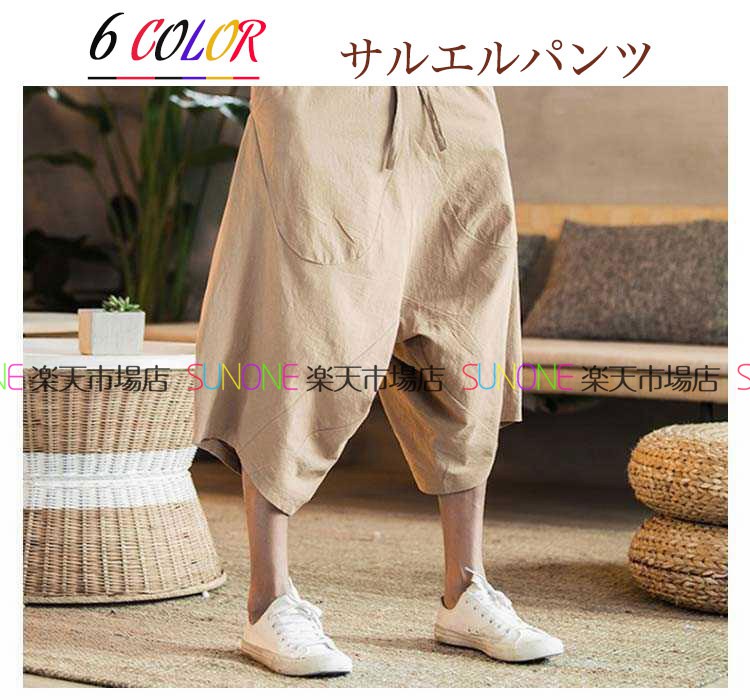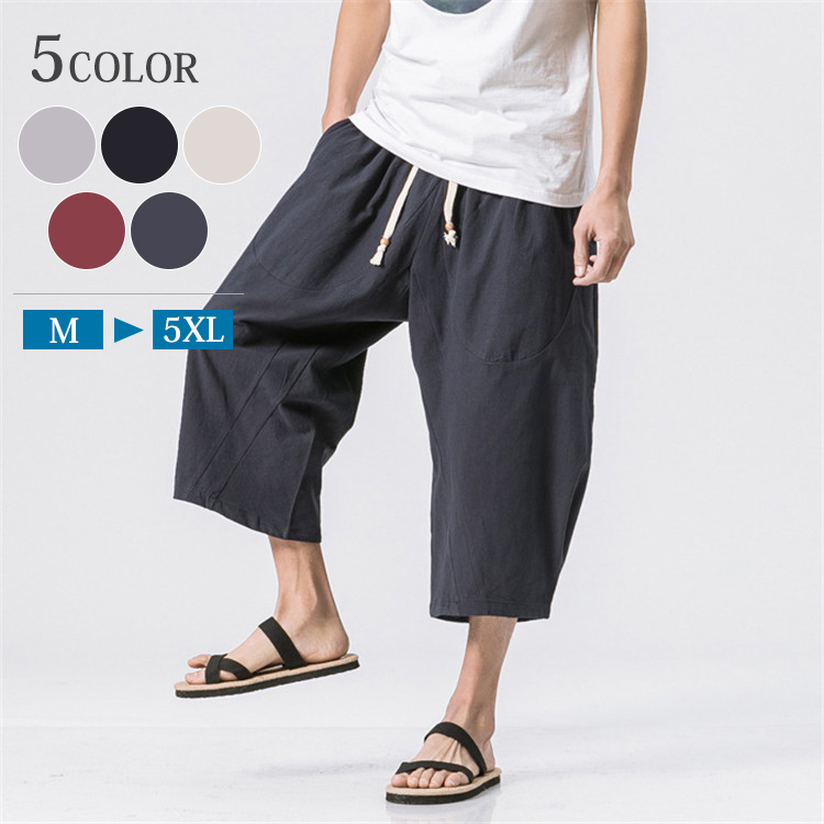 サルエルパンツ メンズ ワイドパンツ 綿麻 リネン 袴パンツ リネンパンツ ガウチョパンツ 7分丈 サルエルパンツ ウエストゴム ヒップホップ メンズ ズボン ショートパンツ