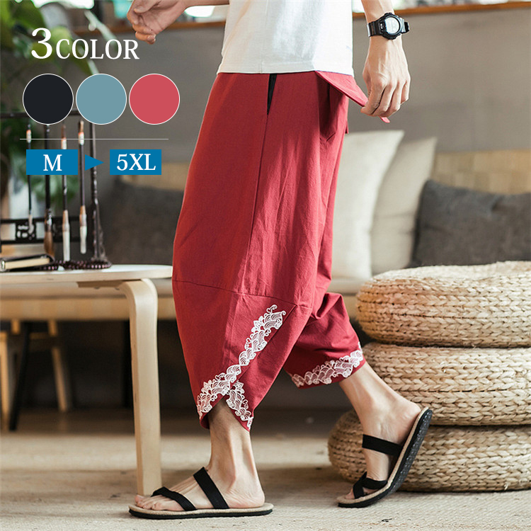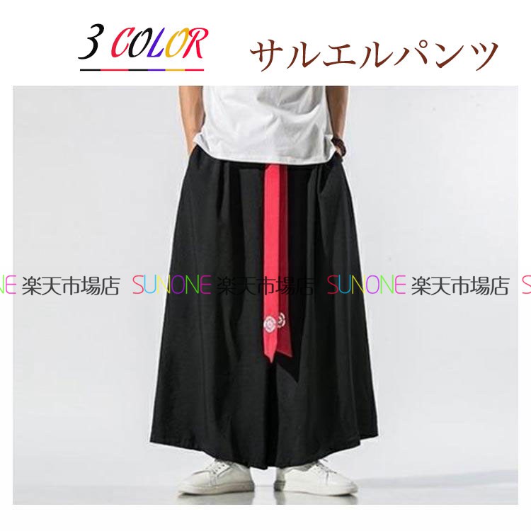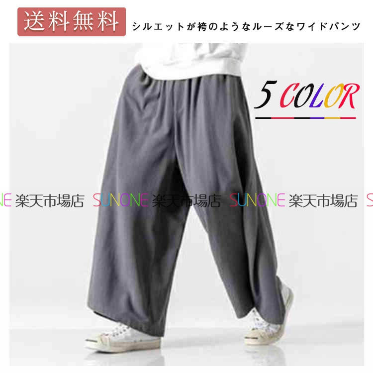 ワイドパンツ メンズ ガウチョパンツ バギーパンツ 麻 ストリート カジュアル 春 夏 スプリング サマー 大きいサイズ 袴パンツ スカートパンツ