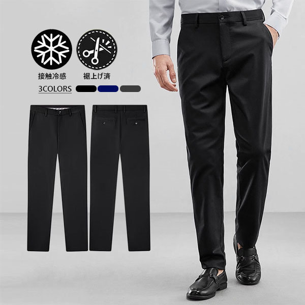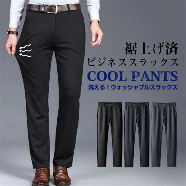 裾上げ済 スラックス メンズ ストレッチ スリム 涼しい ビジネスパンツ ビジネススラックス 美脚 細身 ウォッシャブル 洗える 20代30代40代50代60代