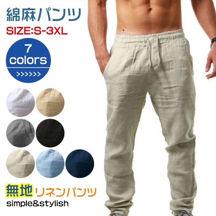綿麻パンツ メンズ 麻パンツ リネンパンツ チノパン 無地 綿麻 涼しいズボン ロング丈 ストレットパンツ おしゃれ 快適 涼しい長ズボン 普段着