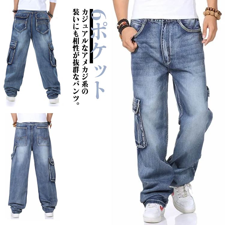 メンズ デニムパンツ ゆったり バギーパンツ ボトムス 極太 カーゴパンツメンズファッション ズボン パンツ