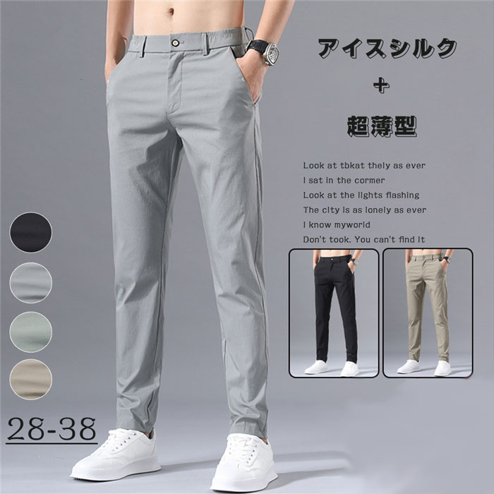 アイスシルクパンツ メンズ 接触冷感 速乾 ストレッチ パンツ メンズ 夏用 極薄 ゴルフパンツ メンズ 夏 チノパンツ 秋 チノパン メンズ パンツ 大きいサイズ 涼しい 吸水速乾 清涼 涼感 薄い