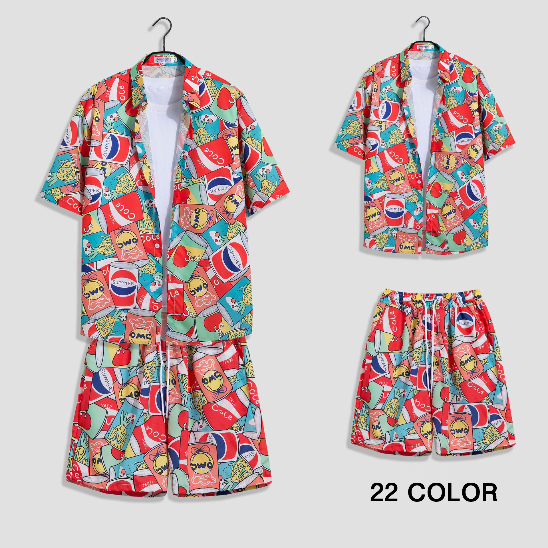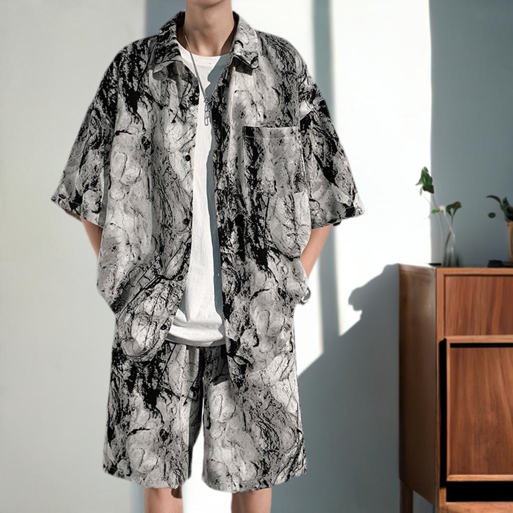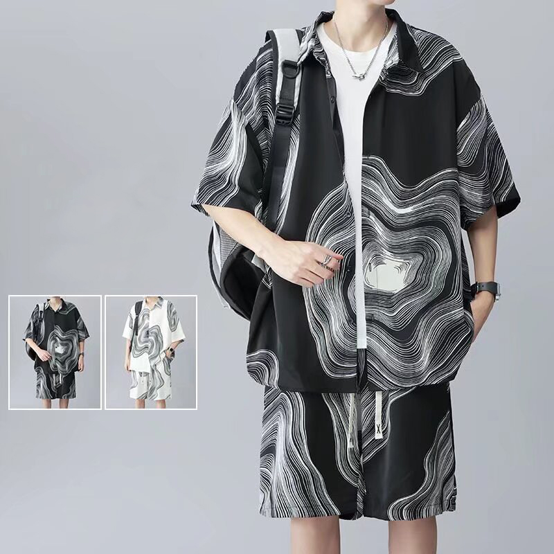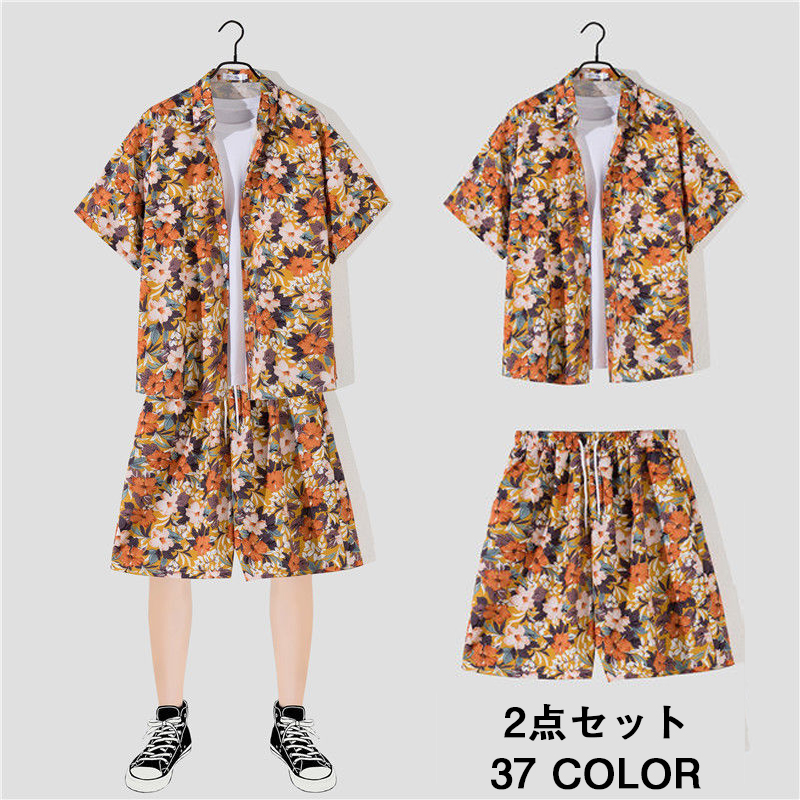 1-2サイズ上をお勧め メンズ セットアップ 2点セット 半袖シャツ おしゃれメンズファッション その他