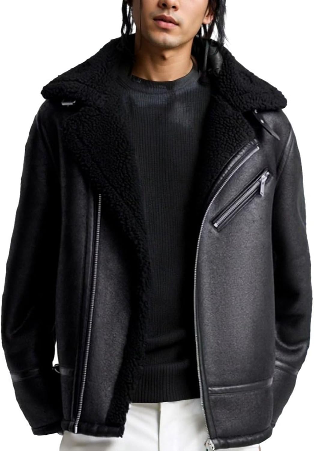 ムートンジャケット B-3 レザージャケット PU革 フライトジャケット メンズ ムートンコート ライダースジャケット 革ジャン b3 ヴィンテージ 大きいサイズ 裏ボア バイク モード系 ターンダウ