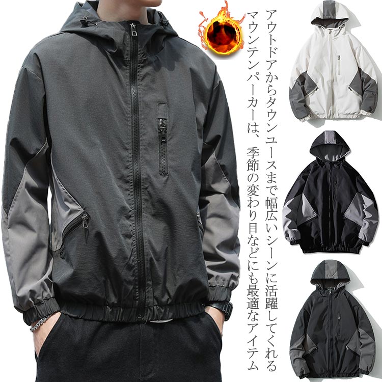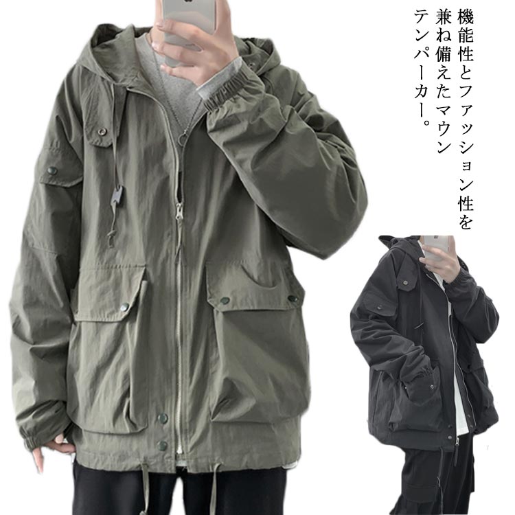 全3色×7サイズ マウンテンパーカー 男性用 メンズマウンテンパーカー アウター ジャケット コート フード付き 春 秋 大きサイズ メンズ
