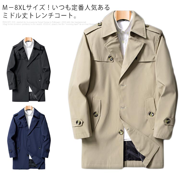 -8サイズ コート メンズ トレンチコート トレンチ メンズコート カジュアル ビジネス 紳士服 春服 春物 秋服 秋物 大きサイズ