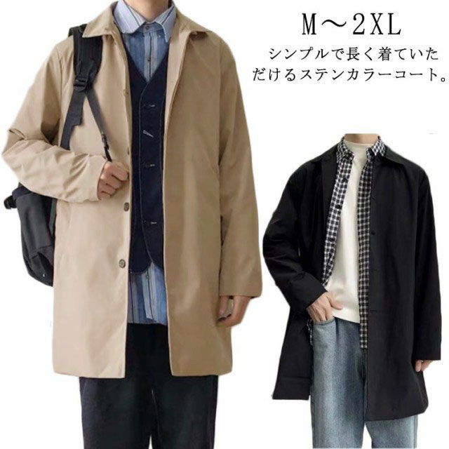 ビジネスコート メンズ トレンチコート 黒 ステンカラーコート 人気 メンズ メンズ 秋 アウター メンズ コート コート