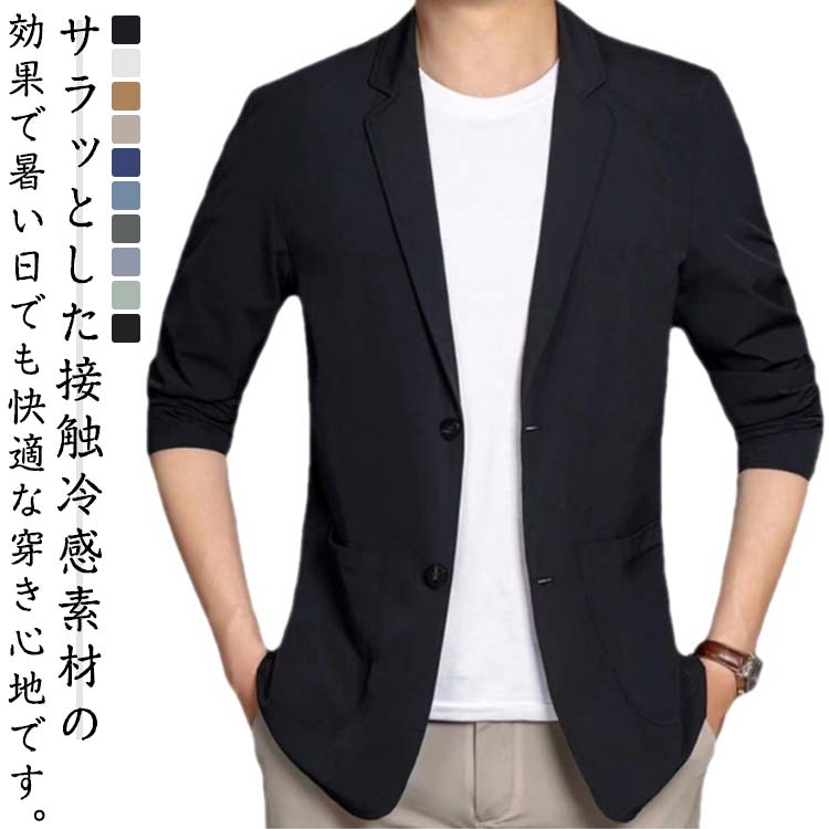 冷感 テーラードジャケット メンズ 冷感 接触冷感 スリム 細身 黒 白メンズファッション コート ジャケット