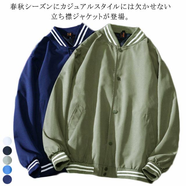 スタジャン ビッグシルエット ブルゾン シンプル 立ち襟 アウター スリム ジャンパーメンズファッション コート ジャケット