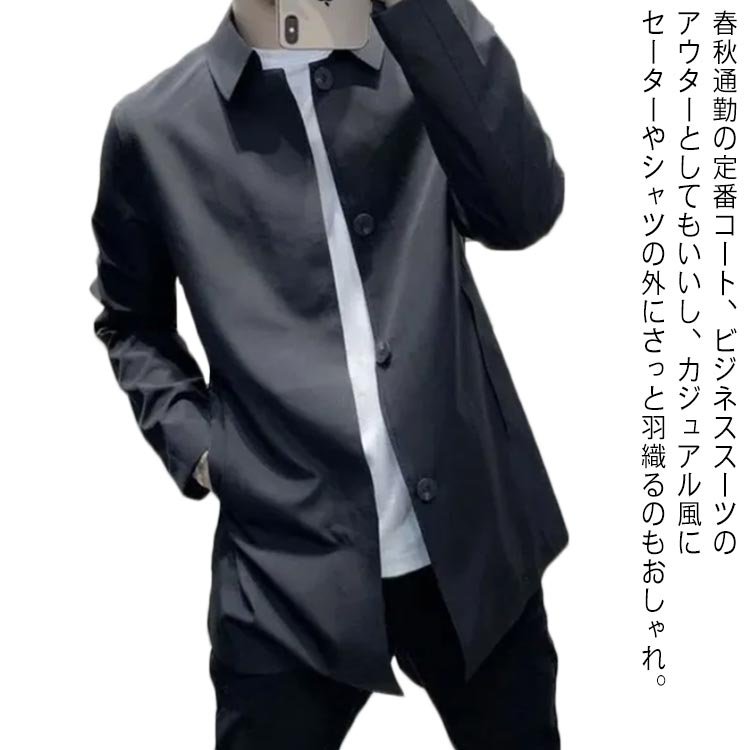 ステンカラーコート スプリングコート メンズ チェスターコート 無地 トレンチコートメンズファッション コート ジャケット