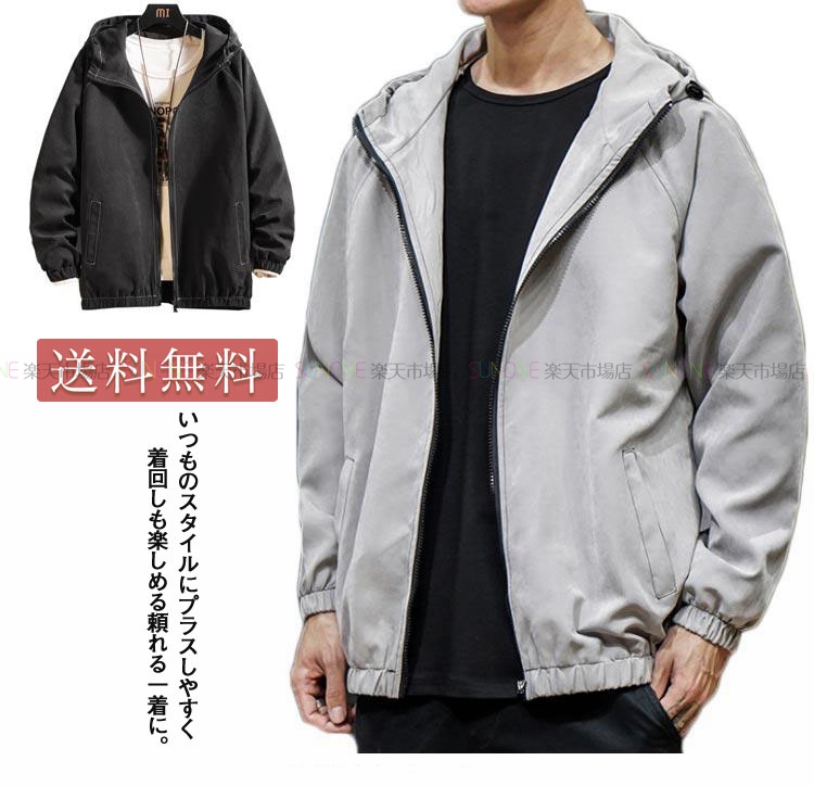 メンズ ンジャケット ウィンドブレーカー ブルゾン アウター フード付き カジュアル ファッション おしゃれ 春 大きいサイズ