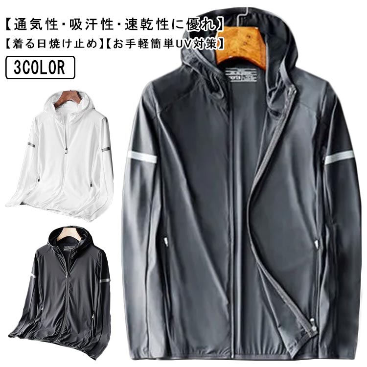 UVカットパーカー ジップアップ 薄手 メンズ フード付き 吸汗速乾 通気性 おしゃれ 冷感 涼しい 長袖 夏用 撥水 大きいサイズ ラッシュガード 紫外線対策 日焼け防止 蒸れにくい ランニング ゴ