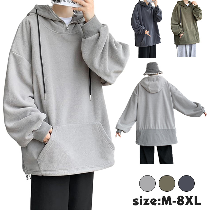 メンズ パーカー 秋服 スウェット 男性長袖 フード付きトップス ポケット付き柔らかい メンズ春秋服 部屋着 -8 オーバーサイズ グレー