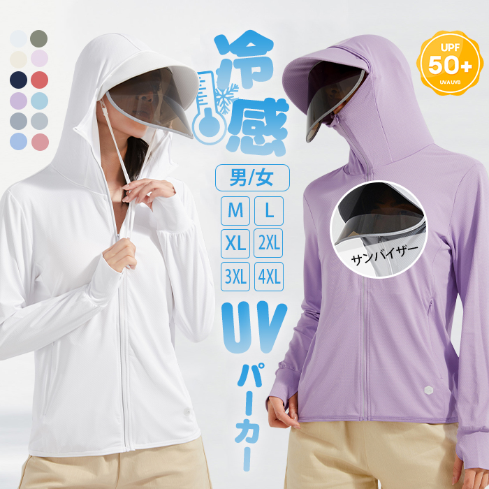 サンバイザー付き UV素材が強い日差し紫外線から女性の肌をしっかりガード ジップアップ 吸汗速乾でべたつきにくい爽やかな着心地 登山 遮熱 釣り 撥水 自転車 旅行 散歩 長袖