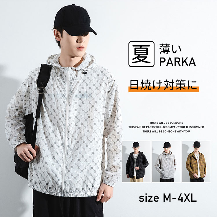 フード付き パーカー 薄手 M~4XL ライトジャケット 紫外線カット UVカットメンズファッション トップス パーカー