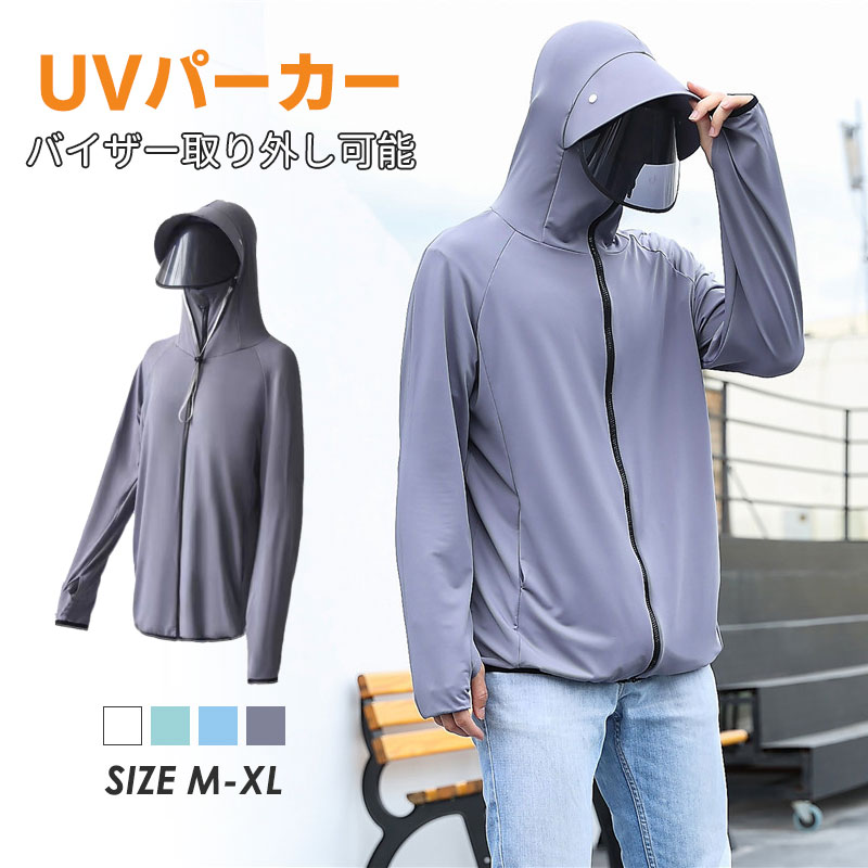 ラッシュパーカー メンズ パーカー ラッシュガード 長袖 夏 アウター UVカット ジャケット フード付き バイザー取り外し可能 日焼け対策ウェア 紫外線対策 学生 通学 M L XL アウトドア 旅