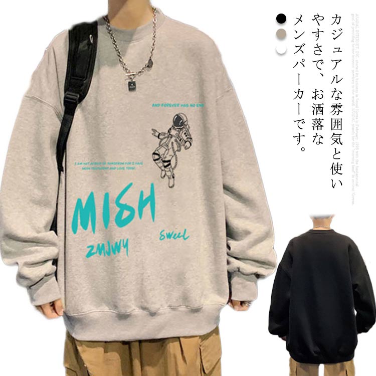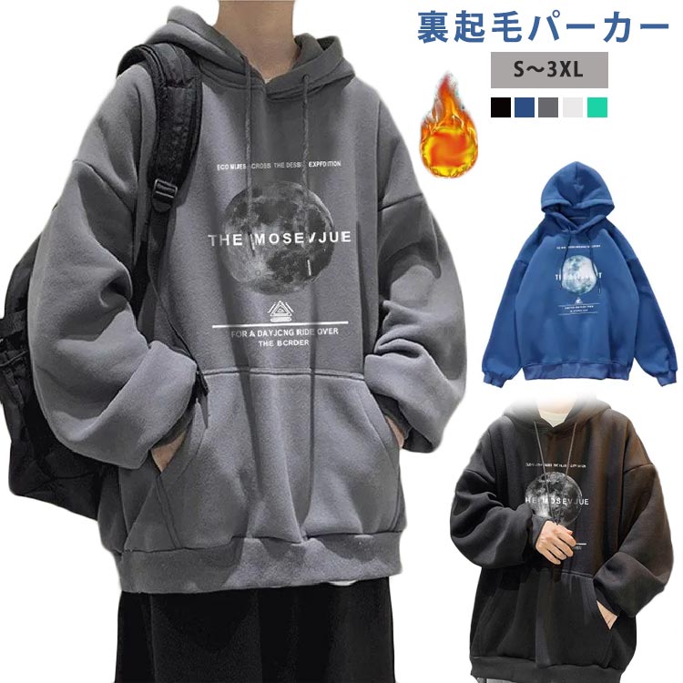 パーカー メンズ スウェット トップス トレーナー ジャージ プリント ビッグシルエット 体系カバー オーバーサイズ ゆったり 長袖 プルオーバー 裏起毛