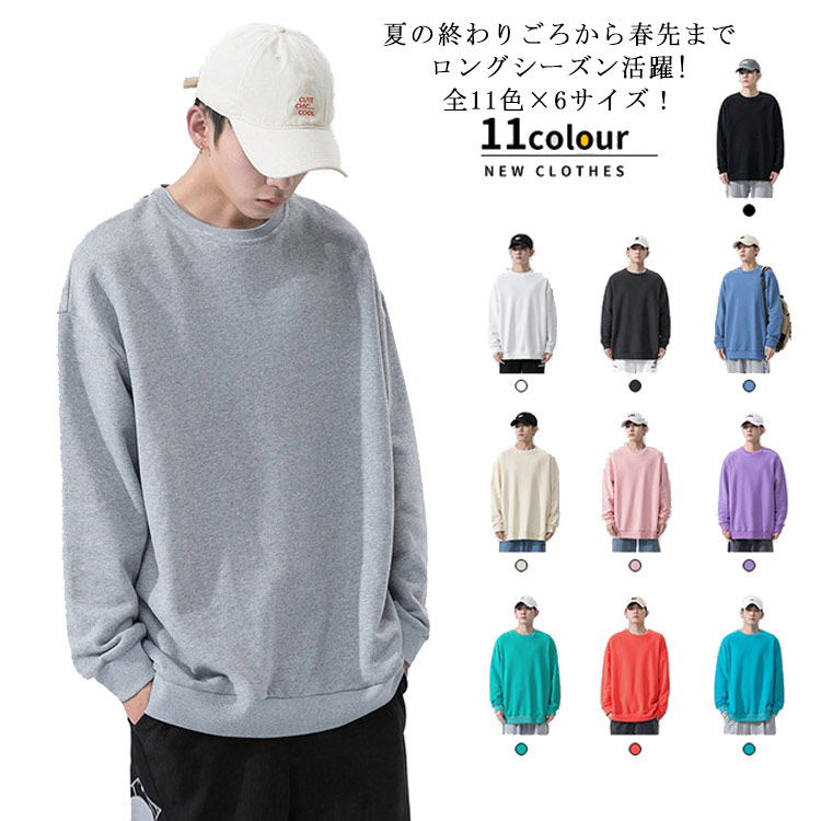 スウェット メンズ トレーナー 秋 無地 コットン Tシャツ トップス オーバーサイズ おしゃれ ビッグシルエット ビッグトレーナー 長袖 大きいサイズ レディース