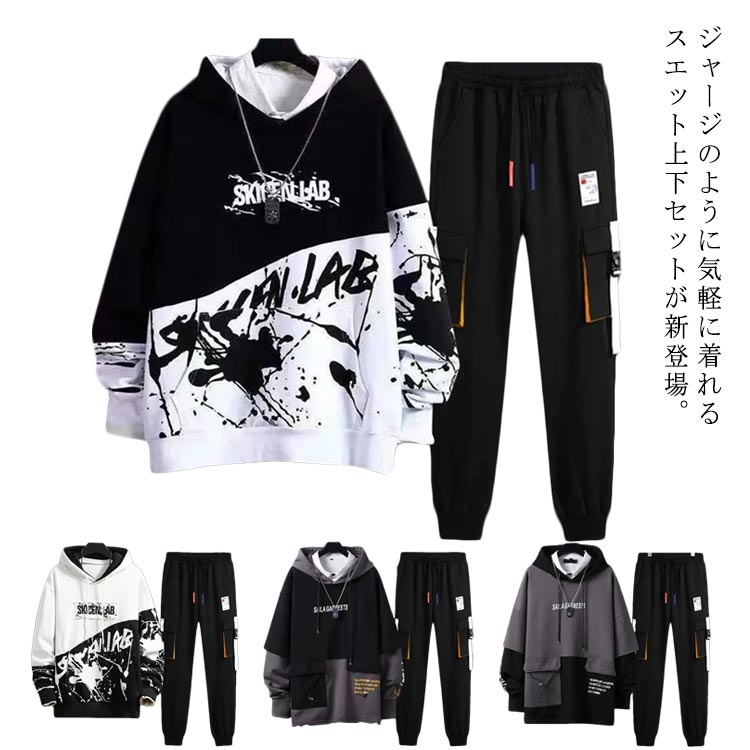 スウェット メンズ セットアップ パーカー プルオーバー 上下セット ロングパンツ カジュアル アウトドア ゆったり ウエストゴム フード付き ジョガーパンツ トレーニング