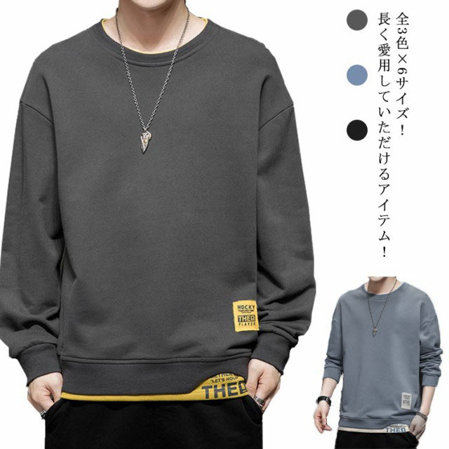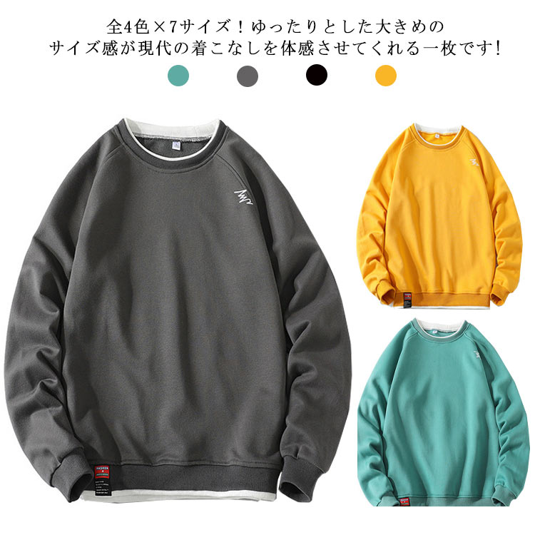 パーカー メンズ スウェット トップス 重ね着風 長袖 プルオーバー ビッグシルエット 体系カバー オーバーサイズ ゆったり カジュアル トレーナー ジャージ