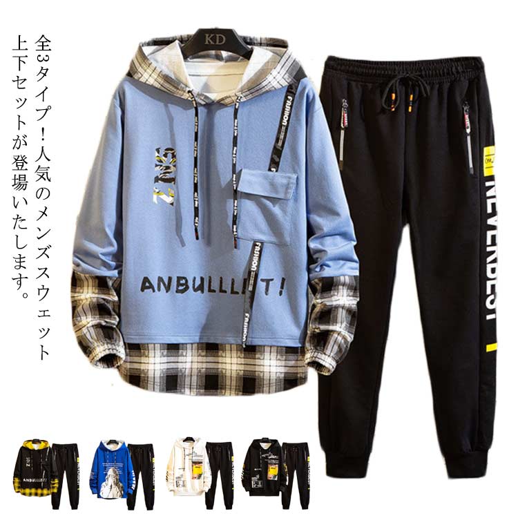 スウェット メンズ セットアップ パーカー プルオーバー 上下セット ロングパンツ カジュアル ゆったり ウエストゴム スポーツ 通学