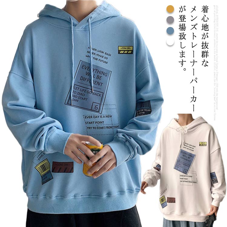 パーカー メンズ スウェット トップス トレーナー ビッグシルエット 体系カバー オーバーサイズ ゆったり フード付き ジャージ プリント