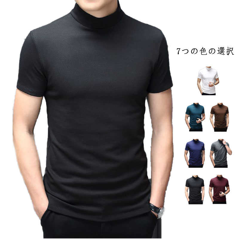 ハイネック 半袖 ゴルフウェア ストレッチ 無地 ハーフネック トップス カットソー スポーツウェア ランニング ゴルフ