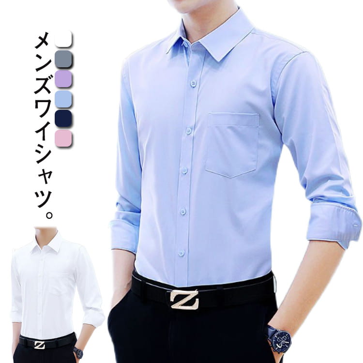 カッターシャツ 紺 メンズ 黒 成人式 ノーアイロンシャツ 入学式 卒業式 謝恩会 半袖 長袖メンズファッション トップス ワイシャツ