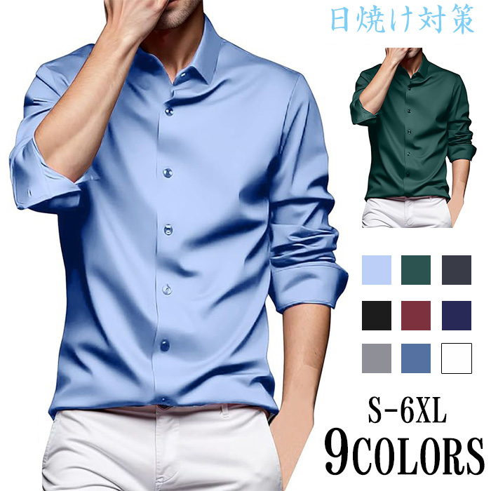 ワイシャツ ワイシャツ 長袖 メンズ ノーアイロン 春服 秋服 制服 大きいサイズ 春服 カット おしゃれ 日焼け対策 カーディガン ユニフォーム ゴルフウェア