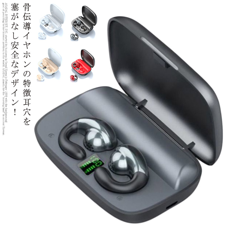 ワイヤレスヘッドセット Hi-Fi高音質 骨伝導イヤホン 充電ケース付き 収納ケース 軽量 バッテリー残電量表示 LED付き