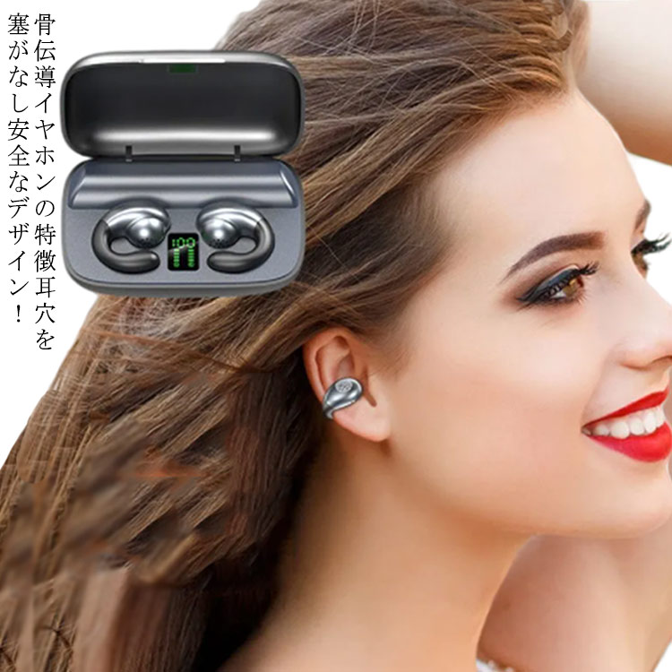 ワイヤレスヘッドセット -高音質 骨伝導イヤホン 充電ケース付き 収納ケース 軽量 バッテリー残電量表示 付き