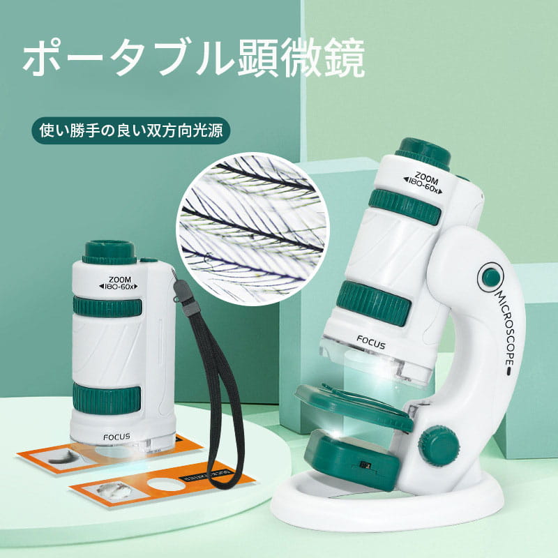 子供用ポータブル顕微鏡 ポータブル顕微鏡 顕微鏡 ポータブル 子供向け アウトドア 60~180倍フォーカシング 6歳とその以上