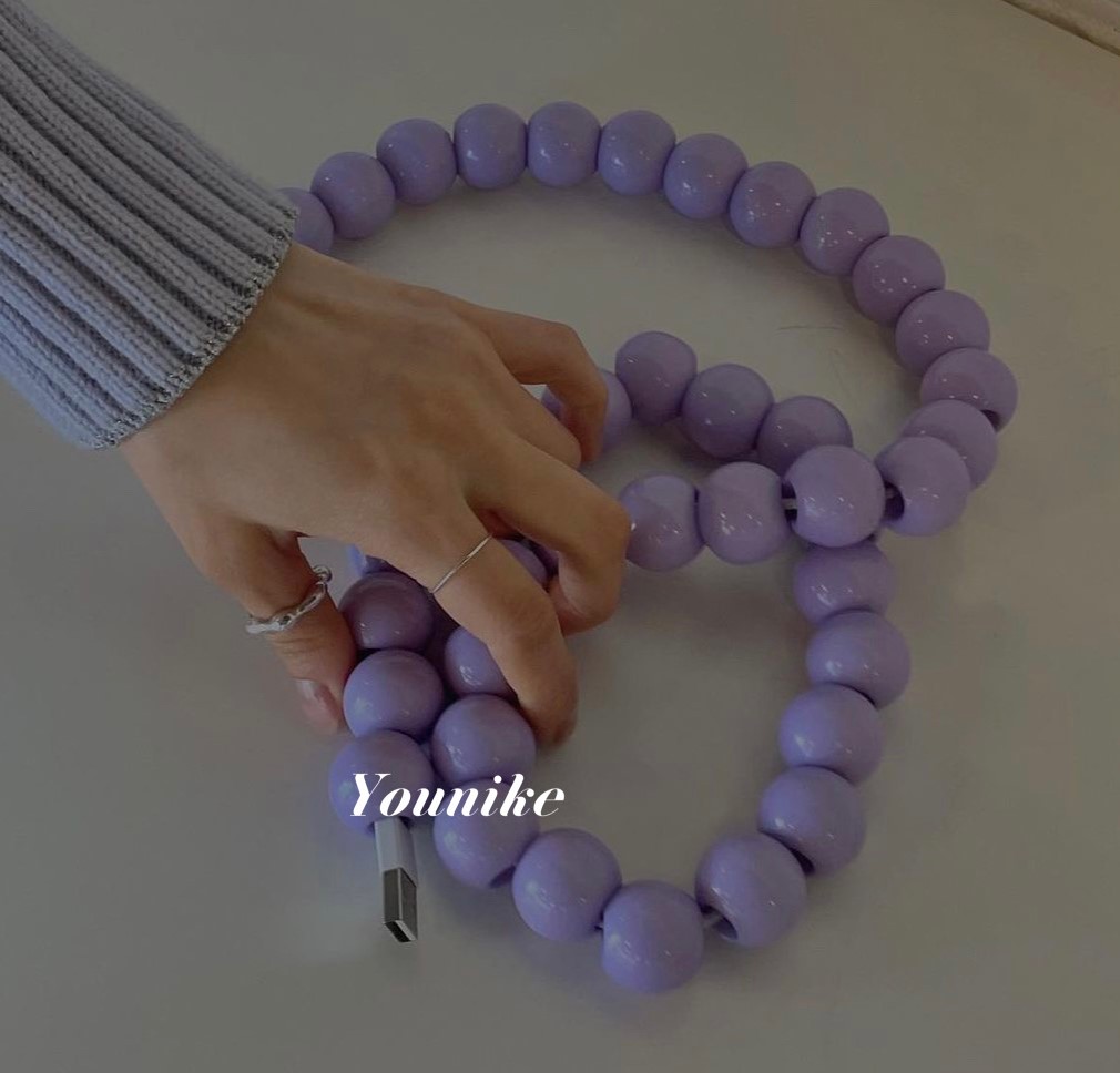 パープルコードジュエリー充電コードカバーケーブルおしゃれかわいい韓国雑貨インテリア北欧丸円1m1メートル保護カバーappleiPhone断線防止パソコンiPad配線カバー紫パステルカラー隠すアクセサリ