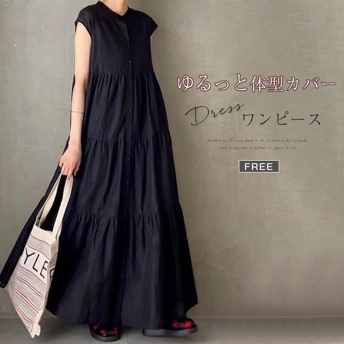 ワンピース マキシワンピース レディース 夏 袖なし ティアードワンピース ワンピ オシャレ シャツワンピース
