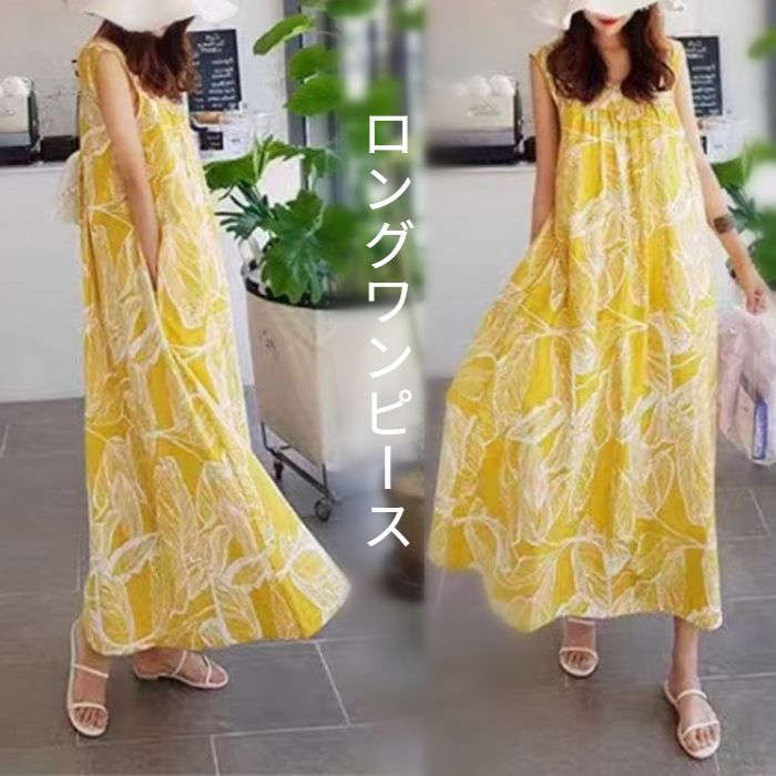 ノースリーブワンピース リネンワンピース レディース ロング 体型カバー ゆったりレディースファッション ワンピース